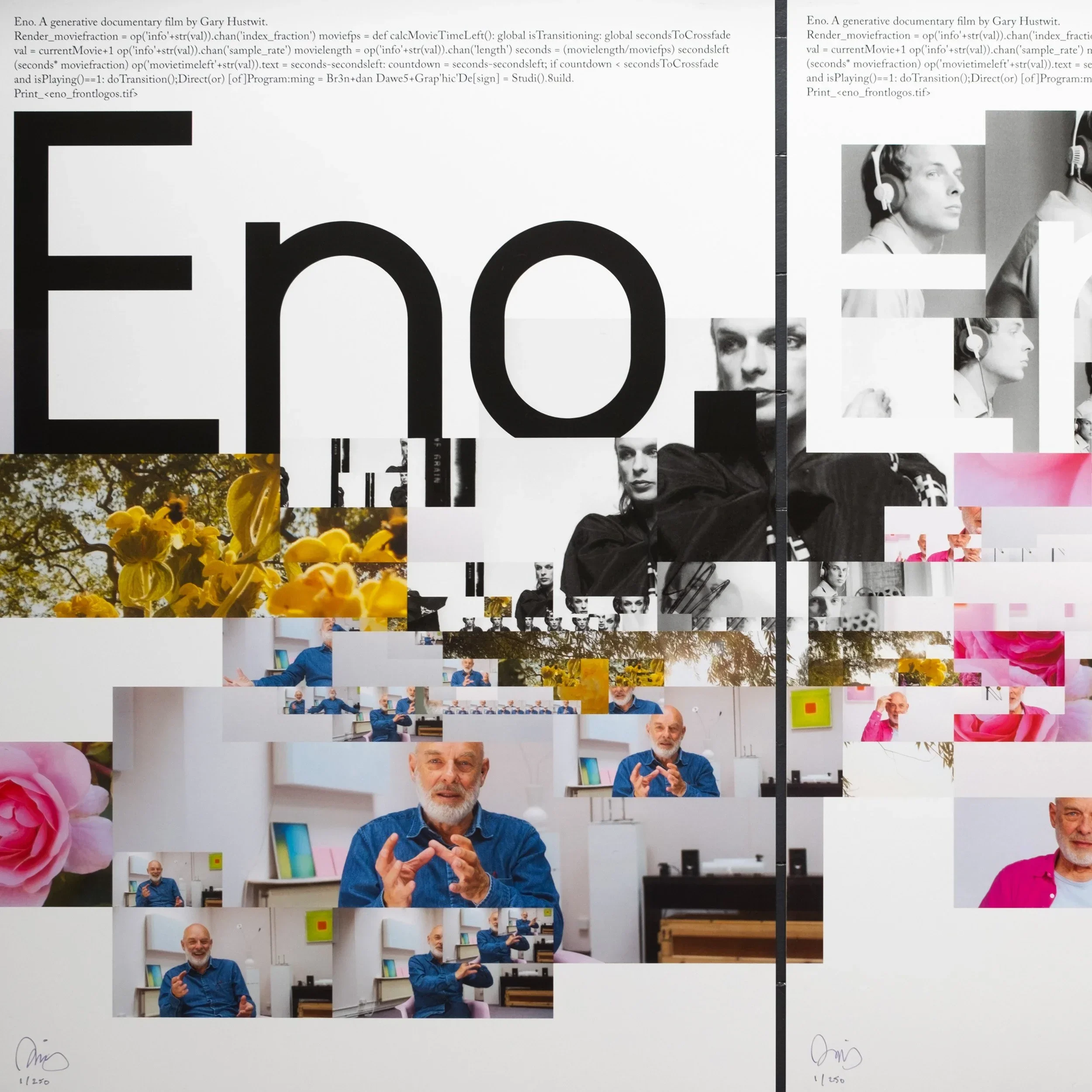 A rare worldwide livestream of five new versions of the acclaimed generative film about Brian Eno. Presented by Anamorph, Kinema and Chance Operations.