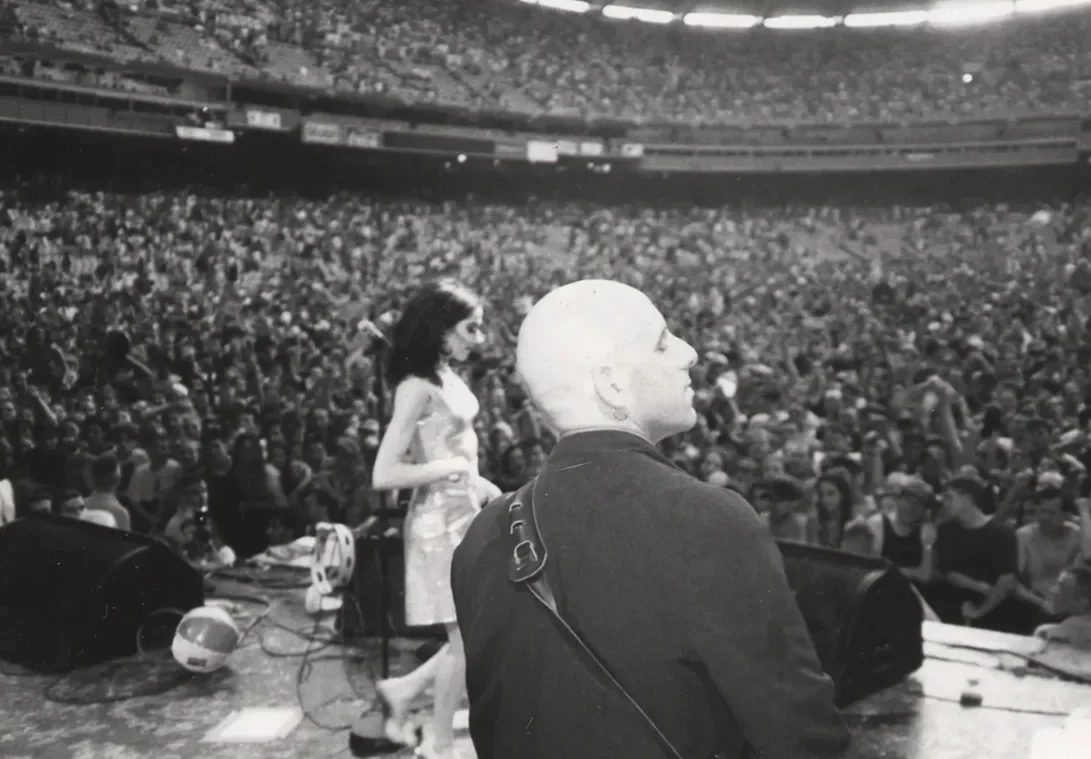 Joe performs with PJ Harvey. Photo by Eric Drew Feldman.