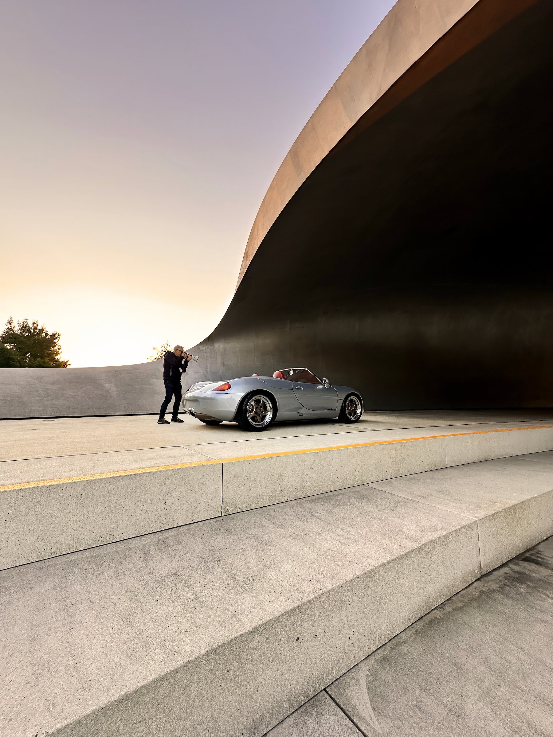 For example, I was in Wolfsburg, Germany last year to shoot the original Porsche Boxster prototype. We placed it in the Porsche Pavilion at sunrise and I've had this shot in my head for months. There’s a movie called the Secret Life of Walter Mitty and Sean Penn plays a photographer in it. There’s this scene with a snow leopard that he’s been chasing and chasing, and when he finally gets his chance to shoot it, he's so captivated that the person with him says “When are you going to take the shot?” He goes “Sometimes if I like a moment, I don't like to have the distraction of the camera—I just want to stay in it.”